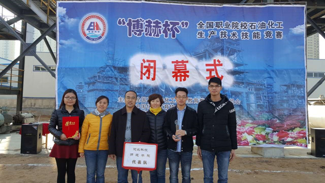 2016年11月6日,全国化工行业“博赫杯”2016年技能大赛在秦皇岛落下帷幕。化工学院宋爱君、段志青老师及2013级应化专业张莹、付庭康、谢美金三名学生组成的参赛队伍在比赛中获得三等奖,宋爱君老师获得优秀指导教师荣誉称号。