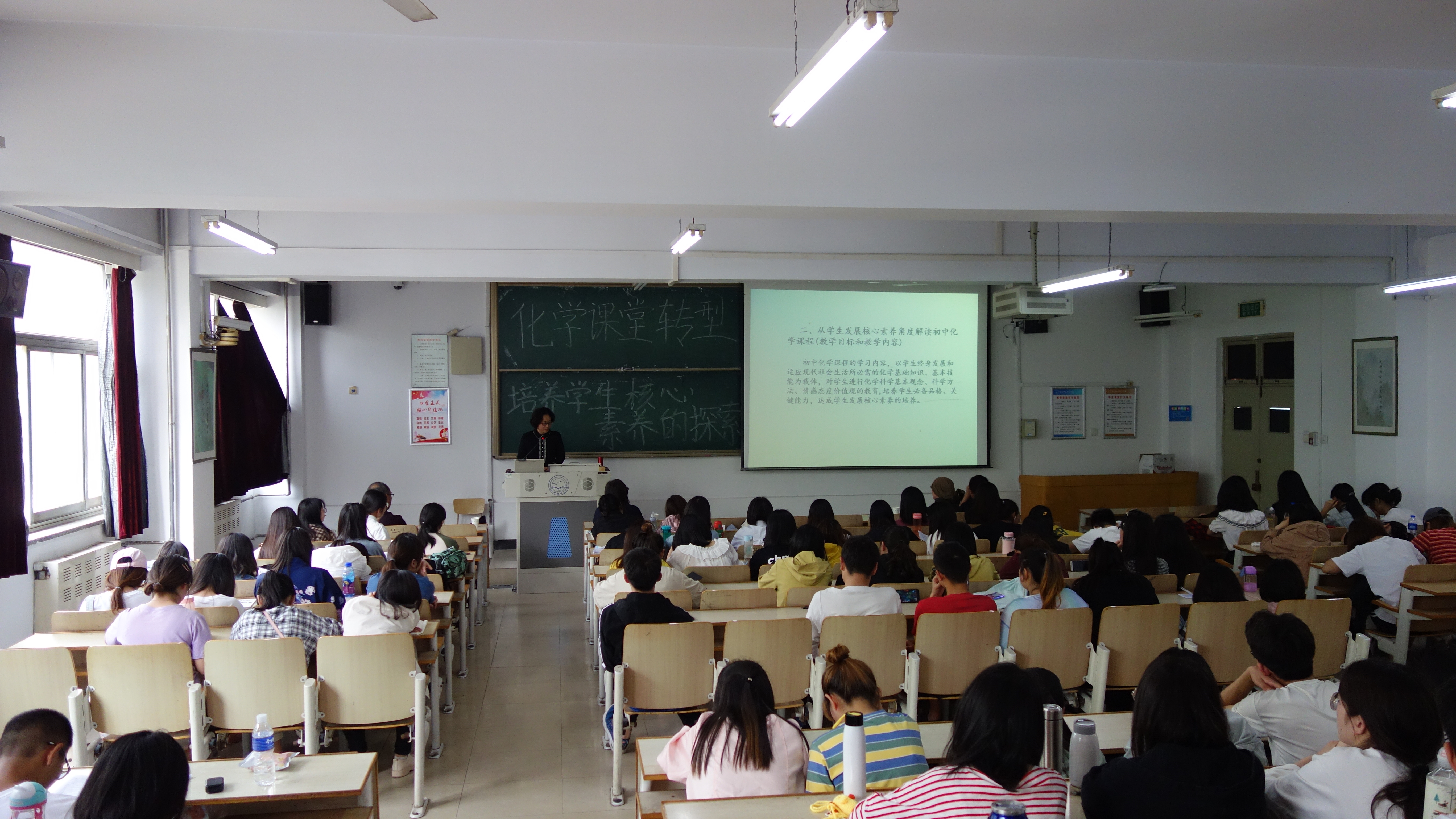 2019年5月14日,beat365官方网站在主楼C-208教室举办“化学课堂转型,培养学生核心素养的探索”的讲座。beat365官方网站院长,秦皇岛教育科研所老师,beat365官方网站学院教学老师以及大一,大二,大三化学专业的全体学生参加了本次活动。