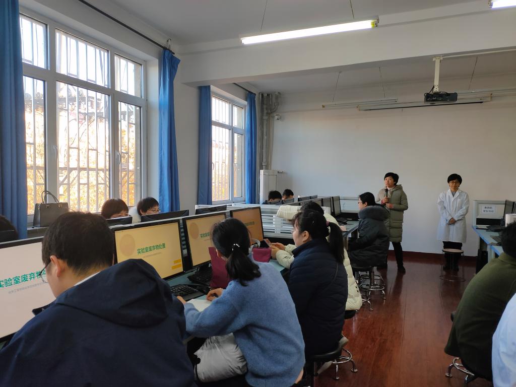 2020年11月26日上午,beat365官方网站在化学实验教学示范中心举办实验安全系列培训——实验室废弃物处置。全院教职员共45人参加培训。
