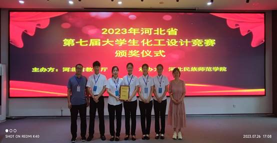 河北省第七届大学生化工设计竞赛于2023年7月25日至26日在河北民族师范学院举行。经过两天的激烈角逐,beat365官网参赛队伍“亮腈腈队”(成员:程佳营、王晓文、乔冰哲、沈雨晴、张艳玲)在段志青、谢江维、刘璐等老师指导下,以优秀的设计和精彩的现场答辩脱颖而出,荣获“河北省总决赛特等奖”。