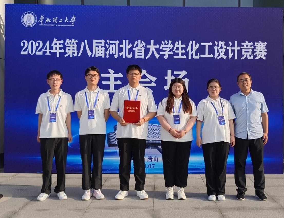 2024年7月26日至29日,河北省第八届大学生化工设计竞赛在华北理工大学顺利举行。经过两天的激烈角逐,由beat365官网谢江维、刘璐、刘艳平等老师指导,邱国杰、郝梁浩、李佳欣、胡佳敏、樊智诚等5名同学组成的“满面醇风”队以优秀的设计作品和精彩的答辩,在河北省26所院校中脱颖而出,荣获河北省总决赛一等奖。