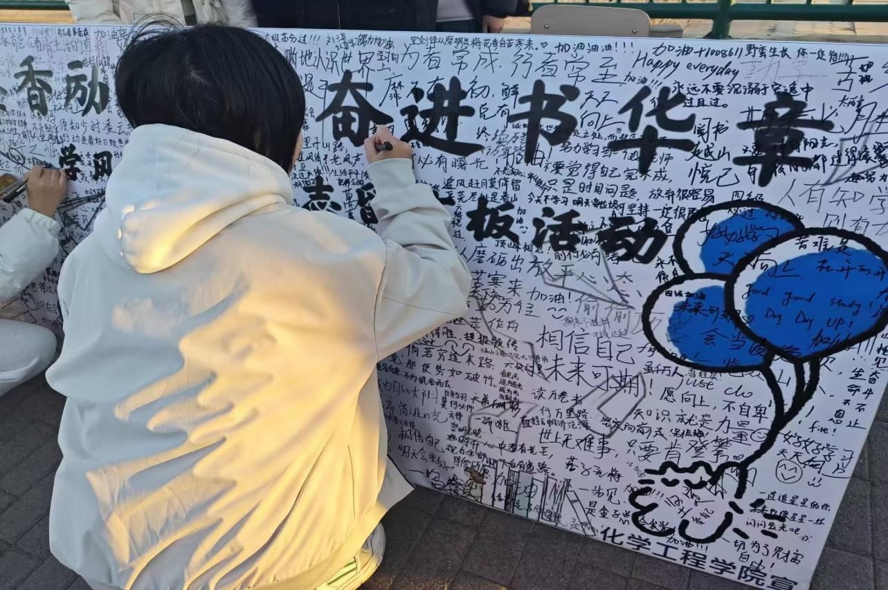 活动当天,同学们在自律委员会成员热情的讲解和引导下,井然有序地排起长队,依次在展板上留下激励自己的话语。“相信自己,未来可期”、“放平心态,偷偷厉害”、“学习,永不言败”……每一句话都凝聚着同学们对学习的执着追求和对未来的美好期许。签字过程中,不少同学还现场相互交流起各自的学习心得与计划,现场气氛热烈而温馨,充满了正能量。