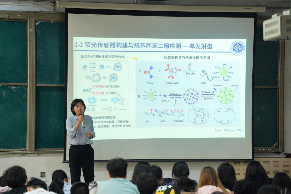 讲座伊始,温洋洋教授便从研究背景与战略意义的高度,深入剖析了“烷基间苯二酚全麦食品快速检测技术”的研发。她不仅阐述了该技术在保障国家食品安全、推动全麦食品产业升级方面所承载的关键价值,更精准指出了当前检测技术领域面临的研究瓶颈与未来突破方向,引发了在场师生的浓厚兴趣与深入思考。