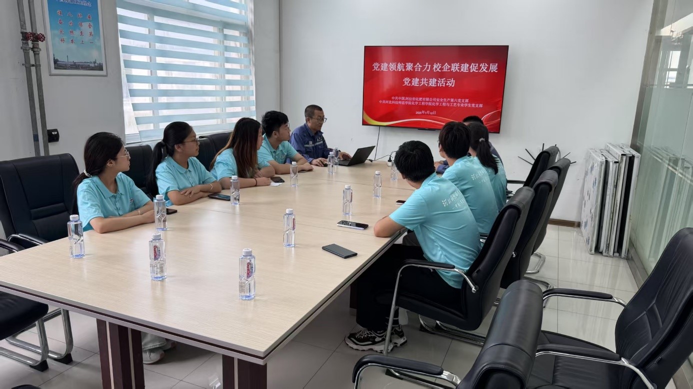 近日,beat365官方网站化学工程与工艺专业学生党支部与中国-阿拉伯化肥有限公司(以下简称“中阿公司”)安全生产第六党支部联合开展的“党建引领促实践,产学融合育人才”主题活动成功举办。活动聚焦学院“绿色化工·红色赋能”党建品牌建设,通过组织联建、资源共享、人才共育,着力构建产教融合、协同发展的校企党建合作新模式。
