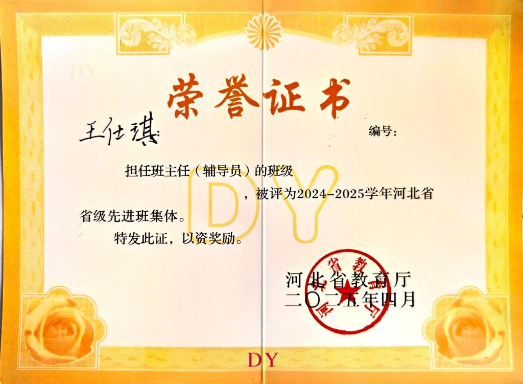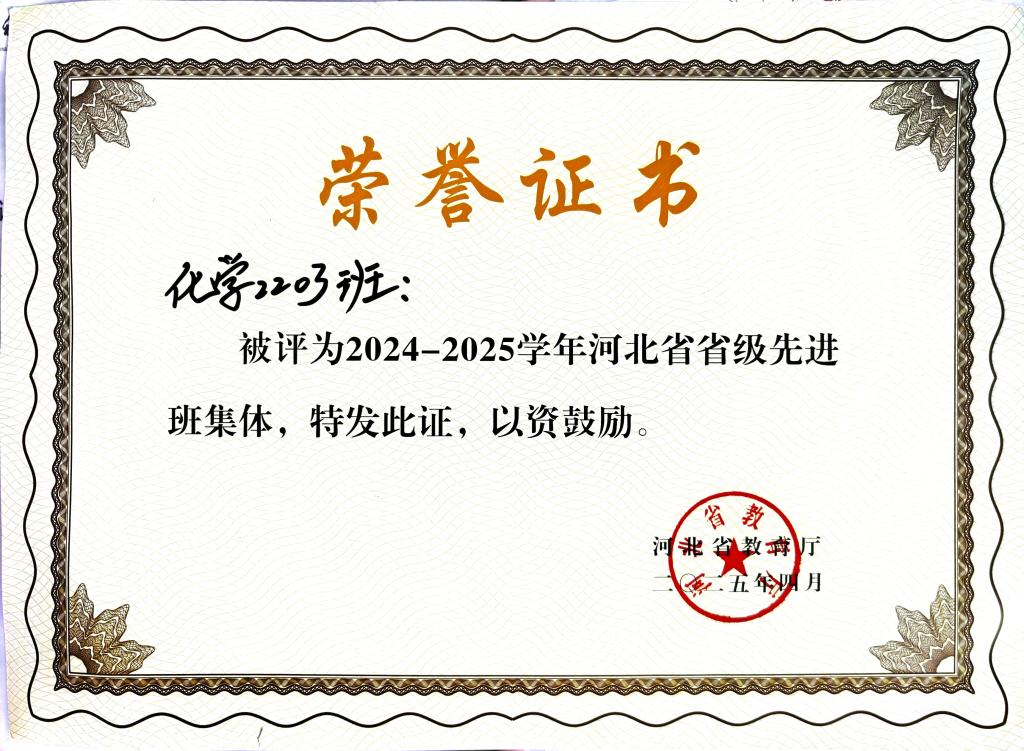 beat365官网化学2203班以“志存高远,知行合一”为班训,荣获2024-2025学年“河北省省级先进班集体”称号。