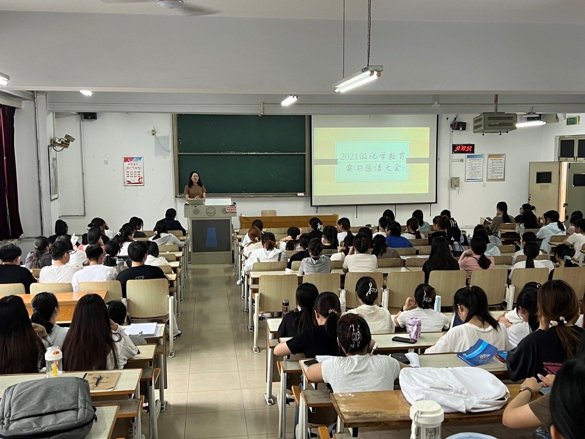 会上,教学部副主任韩乾戟对此次实习进行了全面总结,充分肯定了2021级化学专业学生的实习表现。各实习小组分别介绍了实习学校的基本情况,分享了实习过程中的经历和感悟。学生表示在实习学校学到了丰富的专业知识,提升了教育教学能力和班级管理能力,并激发了教育情怀。